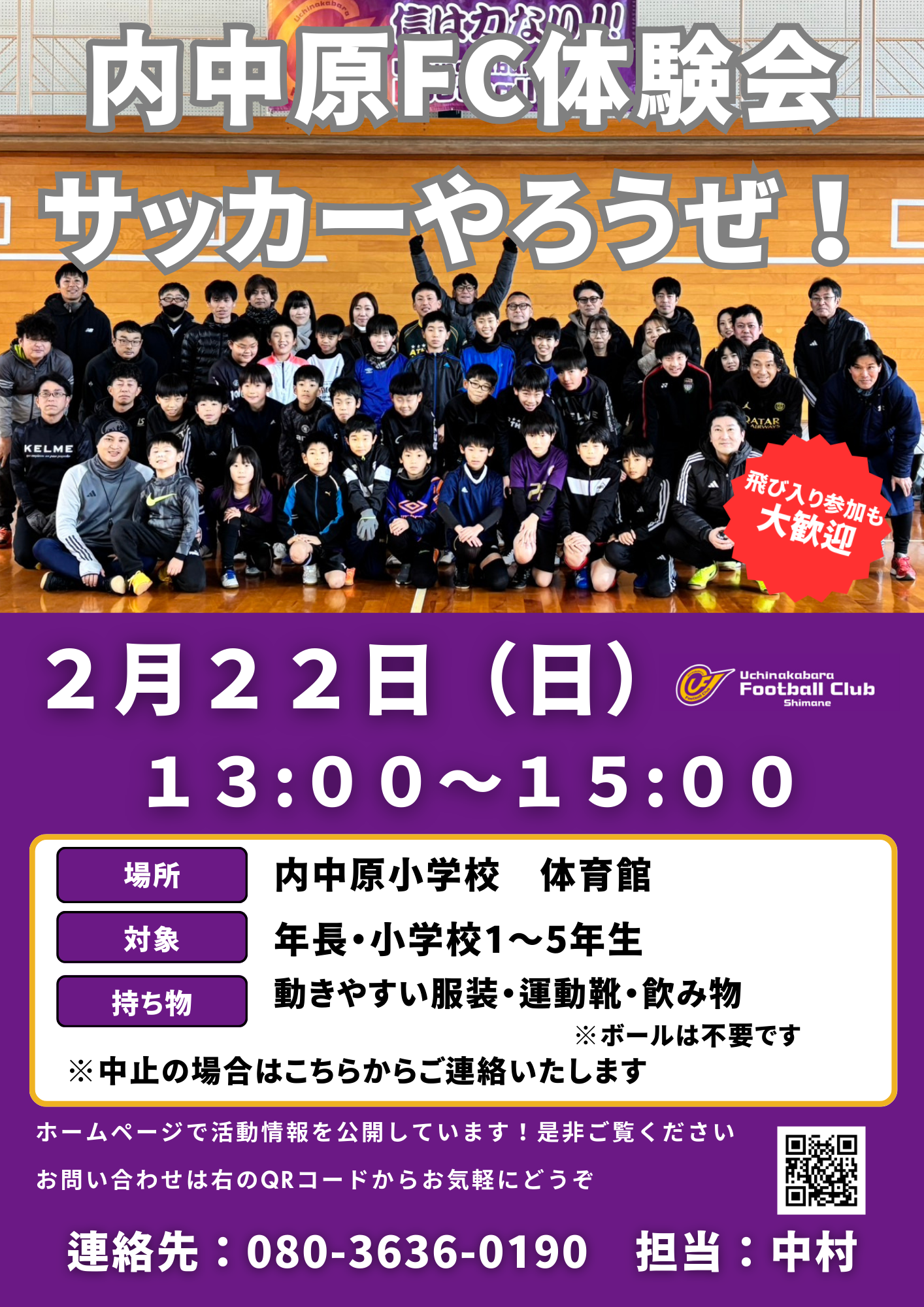 少しでも興味を持たれた方、お子さんに何かスポーツをさせたい方など、ぜひこの機会に体験されてはいかがでしょうか。愉快な仲間たちがお待ちしております。飛び入り参加も大歓迎です!!参加希望、お問い合わせは上記チラシのQRコード等からお願いします。